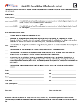 GMAR MLS: Exempt Listing Office Exclusive